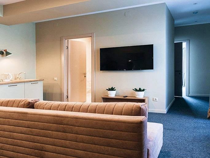 Просторные и светлые номера с современной мебелью, удобными кроватями и всем необходимым для отдыха.