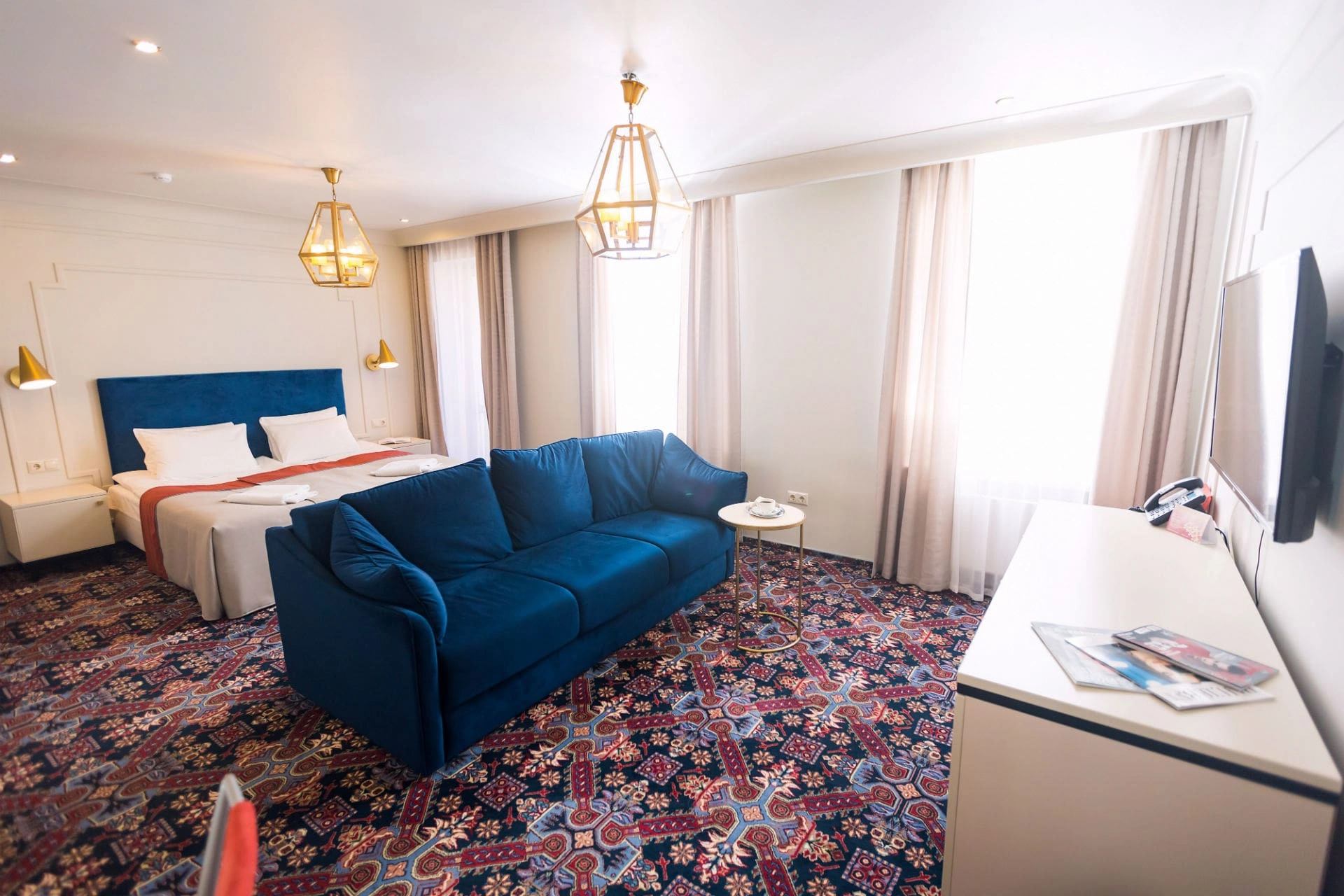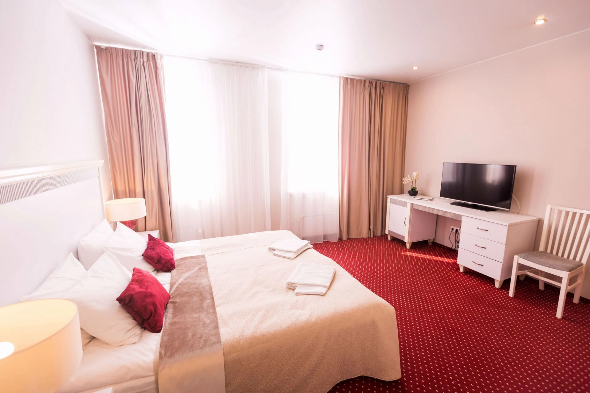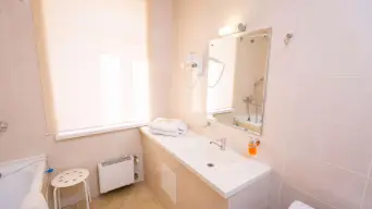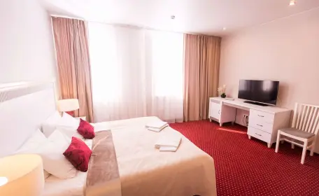 Просторный однокомнатный номер площадью 30 м2 с просторной ванной комнатой. Предполагает одноместное и двухместное размещение.