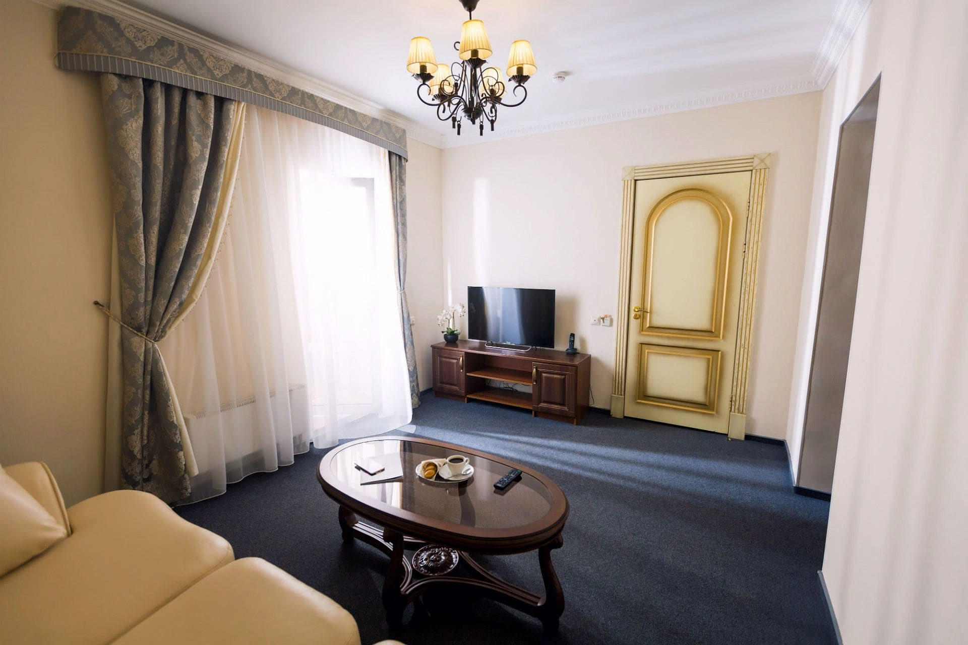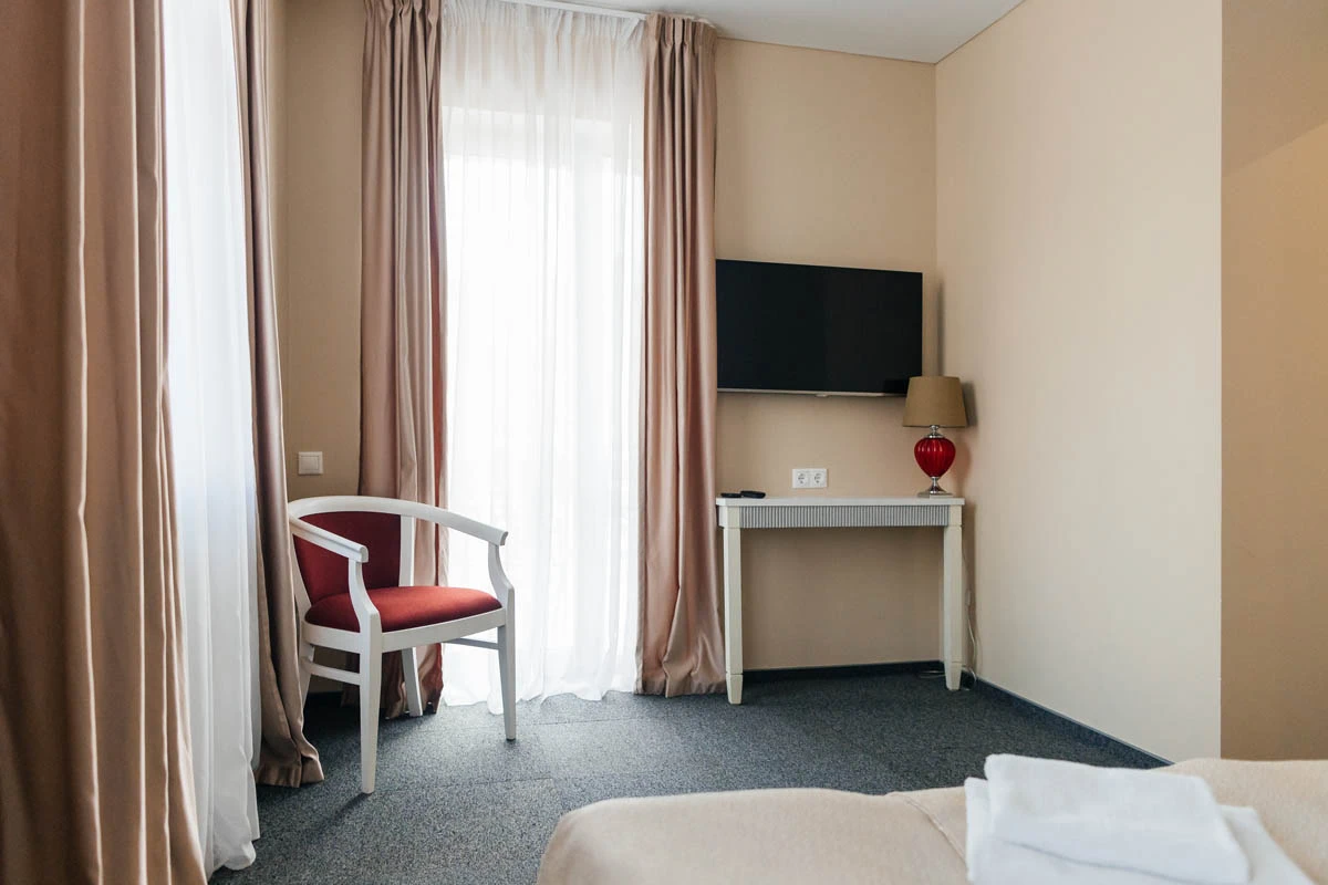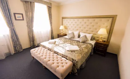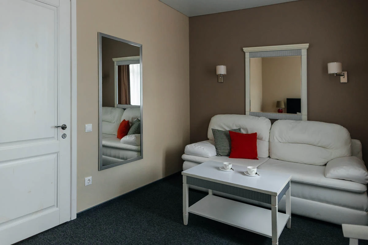 Двухкомнатный номер (гостиная, спальня) площадью 35 м2, предполагающий одноместное и двухместное размещение.